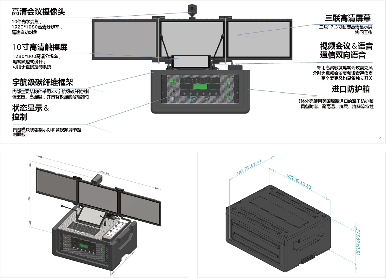 ◆ 四屏協(xié)同顯控:設(shè)備自身具備四塊屏幕,其中三屏采用翻折式設(shè)計(jì)(單屏尺寸為17.3寸),一屏觸控(10.1寸),四屏聯(lián)動使用;